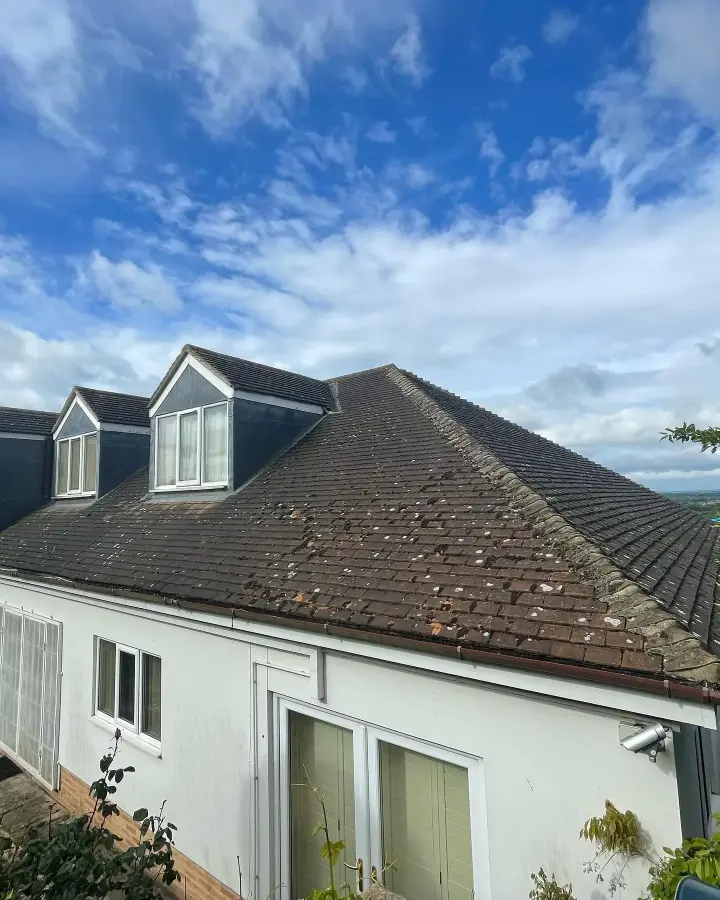 Once cleaned, there will be no more moss filling/blocking your gutters or rolling off the roof and covering patio and path areas. The government HSE approved Biocide treatment limits moss regrowth and continues to clean the tiles long after we have gone.